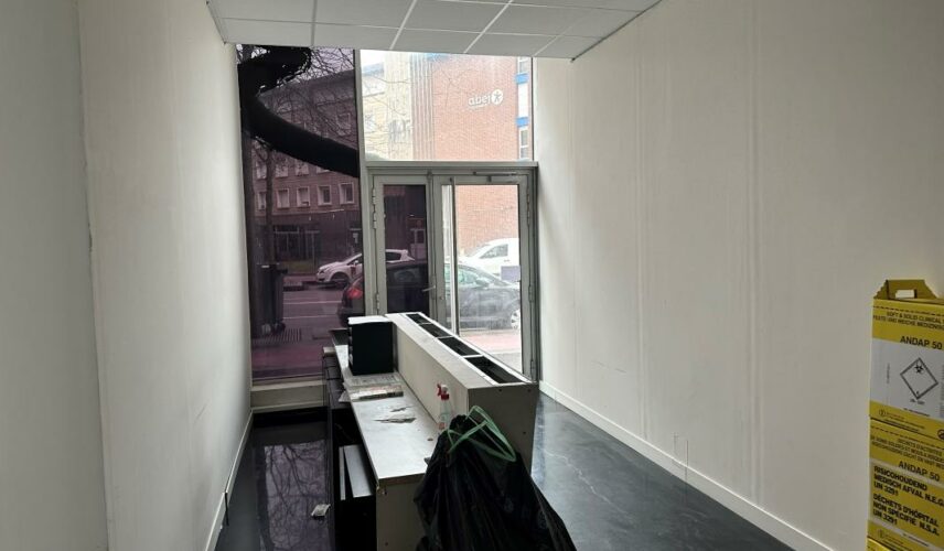 Ce local disponible de suite comprend un espace d’accueil, un open space ainsi qu’un bureau et des wc.